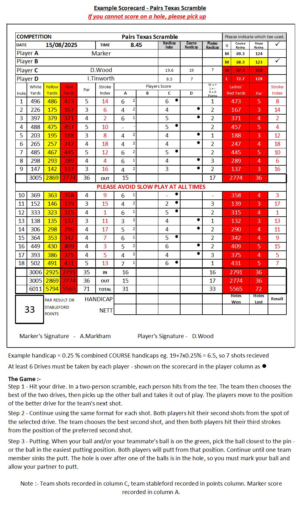 Note to all members:- Please check that the scores on your card are correct and both the marker / player signatures are completed, before you hand in the card to the card collectors.