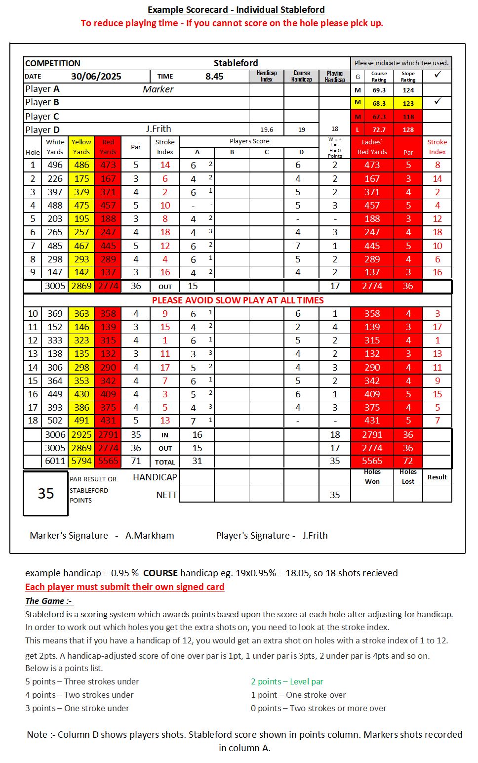NOTE :- On the new scorecard, player A column is the MARKER column.